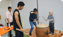 体を伝わる鼓動がやみつきになったようで、会が終わった後も太鼓の音がにぎやかに響いていました。