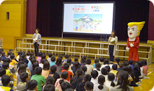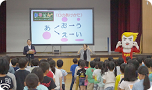 多くの児童、そして保護者の方々にお集まりいただいた天応小学校。アナウンサーという仕事についての紹介などからスタートし、早口言葉も披露させていただきました。自信のある児童たちには前に出てチャレンジしてもらいましたが、しっかりと声が出ている子ばかり。我々も元気を分けてもらいました。