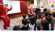 「あわてんぼうのサンタクロース」を歌い、「ピーヒャラダンス」、「どっこくん体操」と、日頃、体を動かさない私にとってはいい運動になりました!踊りのあとは、かなり息切れの状態で喋っていたと思います(汗)