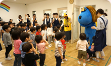 今回は新人の堀池亮介アナウンサーと藤本万梨乃アナウンサーが担当し、約50人の園児が元気よく参加してくれました。フジテレビのキャラクターラフ君が登場すると大歓声が上がりました!