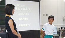 自己紹介をし、発声練習をし、インタビューのポイントを説明して…と、いつもはアナウンサー1人で行う『あなせん』ですが、今回は堀池アナも参加したので、自己紹介からお手本など、すべてを一緒にやってもらいました。これが本当に助かったのです!!!私よりもはるかに児童のみなさんと歳が近い堀池アナは、きっと子どもも好きなんだと思います。彼が話しかけることで児童の皆さんの表情も、私の心も柔らかくなっていきました。
