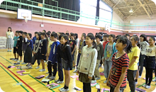 まずは肩に力を入れないでリラックスして声を出す練習。姿勢を正して…飛び跳ねて…肩を揺らして…あぁあぁあぁあぁあぁぁぁぁ~と発声。肩を上下させるのが面白いのか、みんなゲラゲラ笑いながらやってくれました。