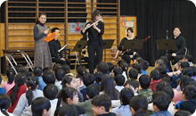 特別授業では、最初にそれぞれの楽器の紹介をして、子どもたちに音楽や楽器に対して興味を持ってもらったところで、いよいよ「くるみ割り人形」の世界へ!