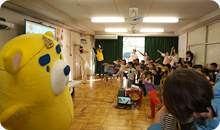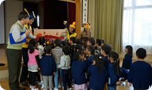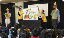 3つの園に次々に伺ったのも初めてでしたが、とにかくどこも元気いっぱいでした。最初から声がたくさん聞かれた園、紙芝居から盛り上がって前に走ってくる子が多くてスタッフ一同焦った園、乳児さんが途中で加わってくれた園もありました。みんなで歌いながら入場したり、イッチーと記念写真を撮ったり、たくさん楽しい仕掛けもあって、あっという間の2日間でした。
