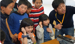 「みんなで声を出してみよう」のコーナーでは、声のボリューム計を使って、ダメな例と良い例を実践。ドラゴンボールに出てくる、孫悟空の【かめはめ波】を例に出すと、男の子を中心に大合唱!