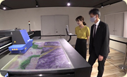 セイコーエプソンの 最先端プリンターを取材する 久代萌美アナウンサー |