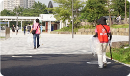 今回は、新型コロナウイルスの感染拡大を防ぐため、事前にエフシージー総合研究所の川上裕司研究員のアドバイスを頂き、①集団ではなく一人で清掃する ②必ず軍手を着用 ③ゴミを拾う際にはトングを使うなどの対策を徹底し、通常より時間を短縮して約30分間実施しました。