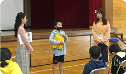 「どんなスポーツが好きですか?」「好きな選手は誰ですか?」「休日はどんなことをして過ごしていますか?」「動物は何か飼っていますか?」「カラオケの十八番はなんですか?→担任の先生と一緒に歌うはめに(笑)」まで、硬軟織り交ぜて色々な質問が飛び交います。
