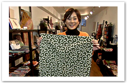 「ふろしきや やまとなでしこ」は開店したばかりのお店。店長の菊田圭子さんはフランスに留学してフランスの文化を学んでいたときに日本の風呂敷の魅力とすばらしさに気付いて、それ以来夢中になってしまったとか。洗練れた雰囲気の漂う素敵な女性です。