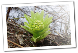硬く閉ざされていた地中から植物が顔を出す=春の訪れ、そう思えた私。でも怪獣は、ツクシもフキノトウも知りません。