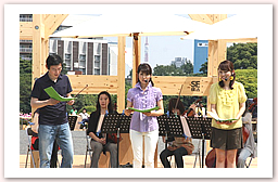 この朗読会はロハスクラブとの初の協同企画ですが、クラシックの生演奏をバックに、エコアナの澄み切った声が新宿御苑に響き、環境を考えるきっかけとなる新しい試みとして好評を博しました。