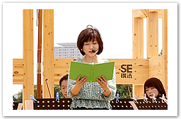そのうち23日(土)と24日(日)の二日間、会場中央に作られた屋外ステージで、フジテレビのCSR活動を支えるエコアナ6人が参加して、童話の無料朗読会を行いました。