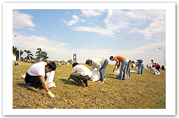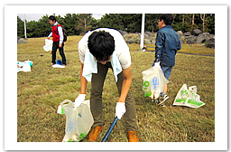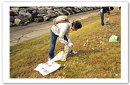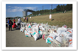 10月10日、台風一過の青空の下、『ふるさと清掃運動会環境アクション2009』の一環として「東京湾岸大清掃作戦」が、江東区にある若洲海浜公園で開催されました。『ふるさと清掃運動会』は、王貞治さんが実行委員長を務め、今年で3回目を迎える環境保全活動です。この日は、1都2県で大規模な清掃活動が実施されました。