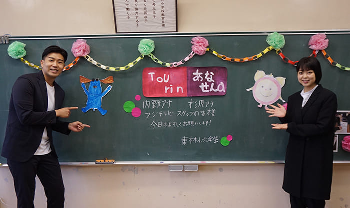 頼れる後輩の安宅アナと、フレッシュな入社一年目、勝野アナと共に今回『あなせん』の授業に来たのは横浜市立黒須田小学校。学校に着いた時は、わいわいと明るい声が聞こえる、掃除の時間。