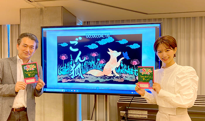「あなせん・デジタル紙芝居」は3年目。新型コロナへの警戒の仕方が少しずつ変わっていく中、子どもたちの席の間からアクリル板が消え、互いの心の距離が少しだけ近くなりました。大きなテレビモニタとマイクを前に、アニメのアテレコさながらの「声優体験」で、
