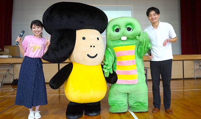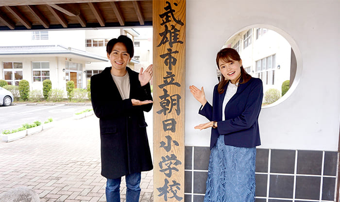 東京から飛行機とバスを乗り継いで向かったのは、佐賀県武雄市立朝日小学校。サガテレビの橋爪和泉アナウンサーという頼もしいパートナーも一緒です。今回は、“通常の『あなせん』+メディアリテラシー”のスペシャル授業。