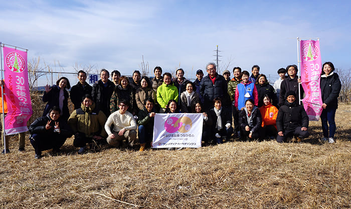 2022年1月22日、今年もフジ・メディア・ホールディングス各社の有志が集い、福島県相馬市で桜の植樹活 動を行いました。地震や津波、さらに放射能の影響を受けた福島県で「30年後に子どもたちが誇れる桜並木を作りたい」