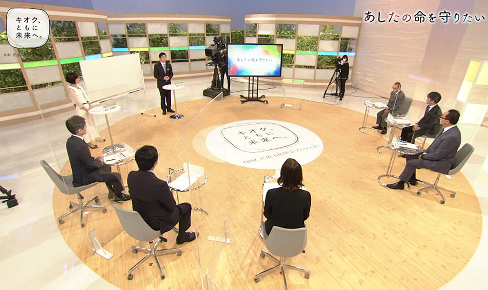 3月14日にNHKで放送された『あしたの命を守りたい~NHK民放 取材者たちの震災10年』では、史上初めて、6局の災害報道に携わったキャスターや記者が一堂に会し、「あしたの命を守るために」何ができるかをテーマに、討論を繰り広げました。総合司会は、フジテレビの伊藤利尋アナウンサーと、NHKの鈴木奈穂子アナウンサー。