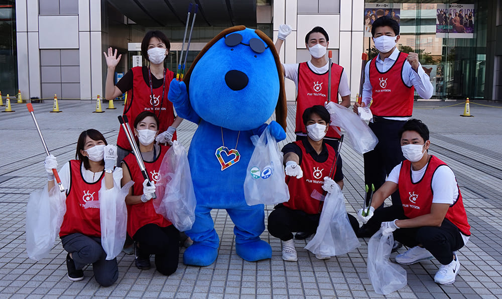 緊急事態宣言が解除された10月8日、フジ・メディア・ホールディングス合同清掃活動を行いました。今回の活動には、フジ・メディア・ホールディングス傘下の17社から計60人が集結し、さらにフジテレビキャラクターのラフくんが清掃活動に初参加。「密にならない」「軍手着用」「トングの使用」など、しっかりと感染対策を講じた上でお台場エリアを綺麗にしました。