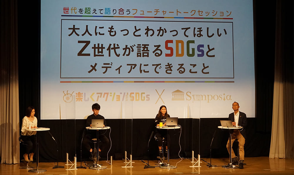 これは、「楽しくアクション!SDGs」プロジェクトの一環として企画されたもので、登壇したのは大学2年生の入江遥斗さん(19歳)と環境活動家・露木志奈さん(20歳)、そして「ジャパンSDGsアクション推進協議会」を立ち上げたSDGsのスペシャリスト・博報堂DYホールディングスCSRグループ推進担当部長の川廷昌弘さんの3人です。