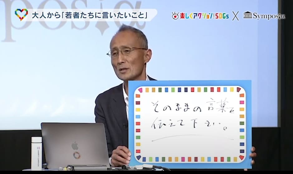 著書「未来をつくる道具 わたしたちのSDGs」が好評しめくくりに、川廷さんに「若者たちに言いたいこと」を尋ねると、「そのままの言葉で伝えて下さい」というメッセージが贈られました。