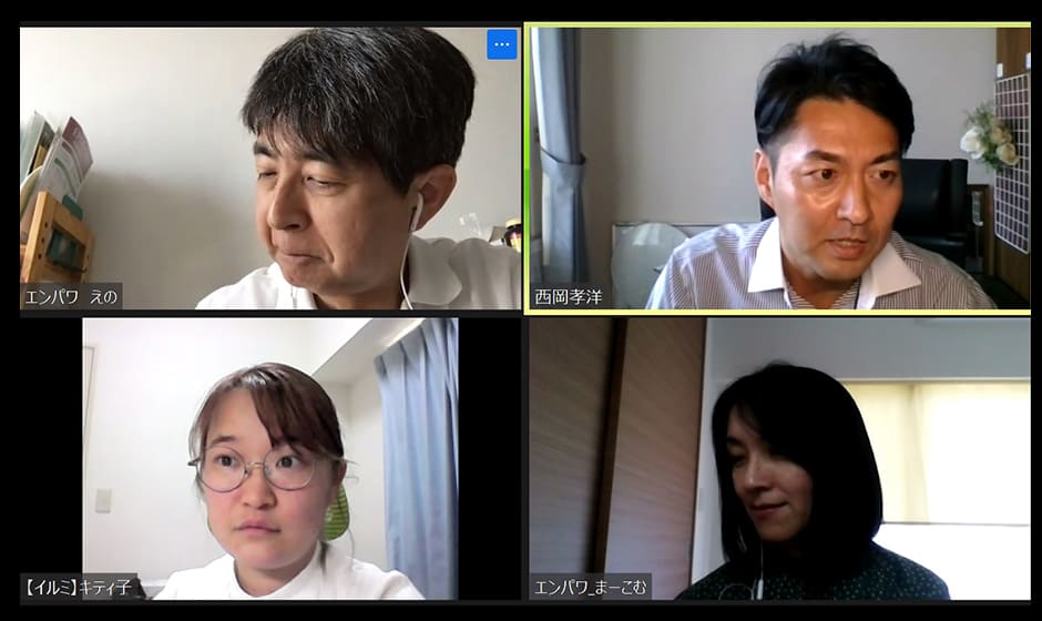 今回初めて参加する西岡アナ(右上)普段私は、スポーツ実況というスポーツの感動を「言葉」にして伝える仕事をしています。「言葉の力」を信じながらも、自分の力不足で思いを伝えられなくて落ち込むことも多々あります。そんな私に、今回、イルミネーターの皆さんの言葉は実に鋭く心に届きました。