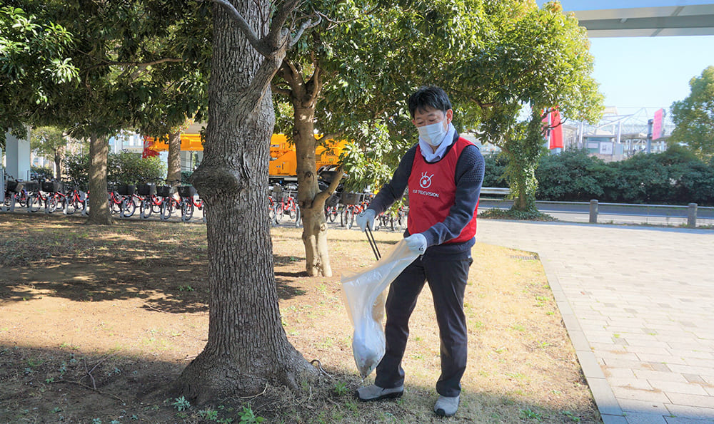 臨海副都心に事業所がある会社や団体で構成されている「東京臨海副都心まちづくり協議会」では、環境関連事業として定期的に「清掃キャンペーン」を行っており、フジテレビも毎年参加をしています。