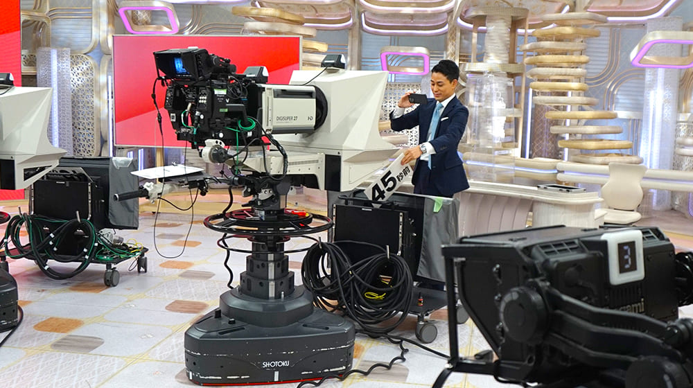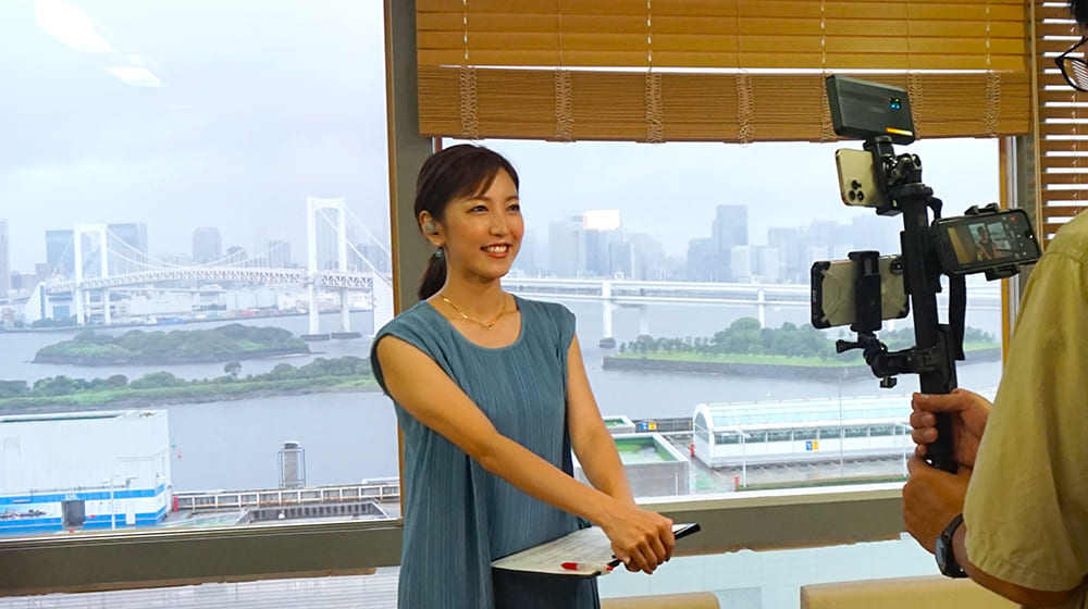 『かけはしプロジェクト』の授業では、アナウンス室からは西山喜久恵・遠藤玲子・生田竜聖・木村拓也・藤本万梨乃・小澤陽子の6名が参加しました。事前にもらっていた質問にまず、めざましテレビ担当の社員が動画を交えて番組の制作について回答し、さらに中継を繋ぎ、木村アナがスタジオから、また技術に関する質問には担当社員が中継車やカメラ機材などが保管されている機材室から答えました。