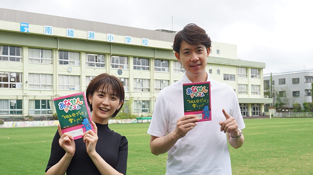 南綾瀬小学校で一緒に授業を行うパートナーは、これまで何度もスポーツの現場で一緒に仕事をしたことのある先輩の田淵アナ。今日はどんな小学生のみなさんと会えるかなあ、と田淵さんと話しながら、わくわくした気持ちで小学校を訪れると、さっそくいろんな学年の生徒たちが「こんにちは~!」と元気に挨拶をしてくれ、うれしい気持ちになりました。