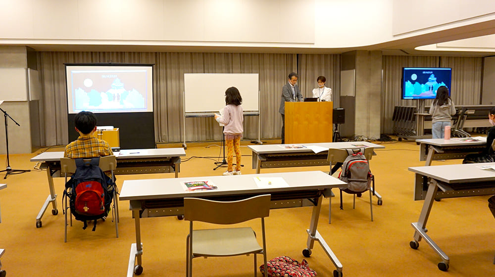 「あなせん・デジタル紙芝居」は3年目。新型コロナへの警戒の仕方が少しずつ変わっていく中、子どもたちの席の間からアクリル板が消え、互いの心の距離が少しだけ近くなりました。