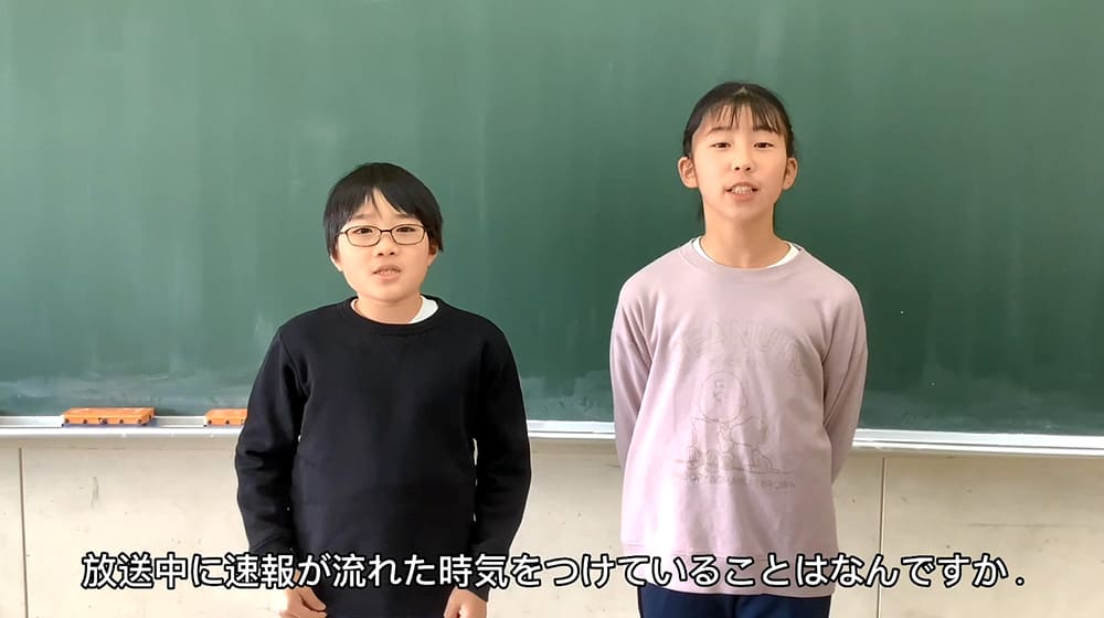 「子どもたちも現場の方の声を聞けると身近に感じながら学習に取り組める」と、番組作りに関することやテレビの仕事に対する意識など、8つの質問を先生が動画に撮って送ってくれました。