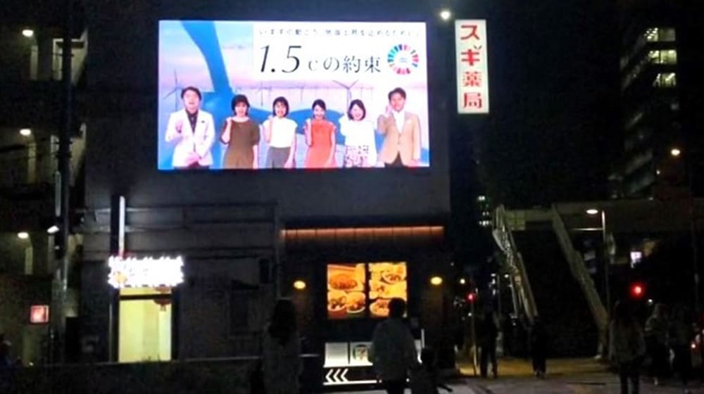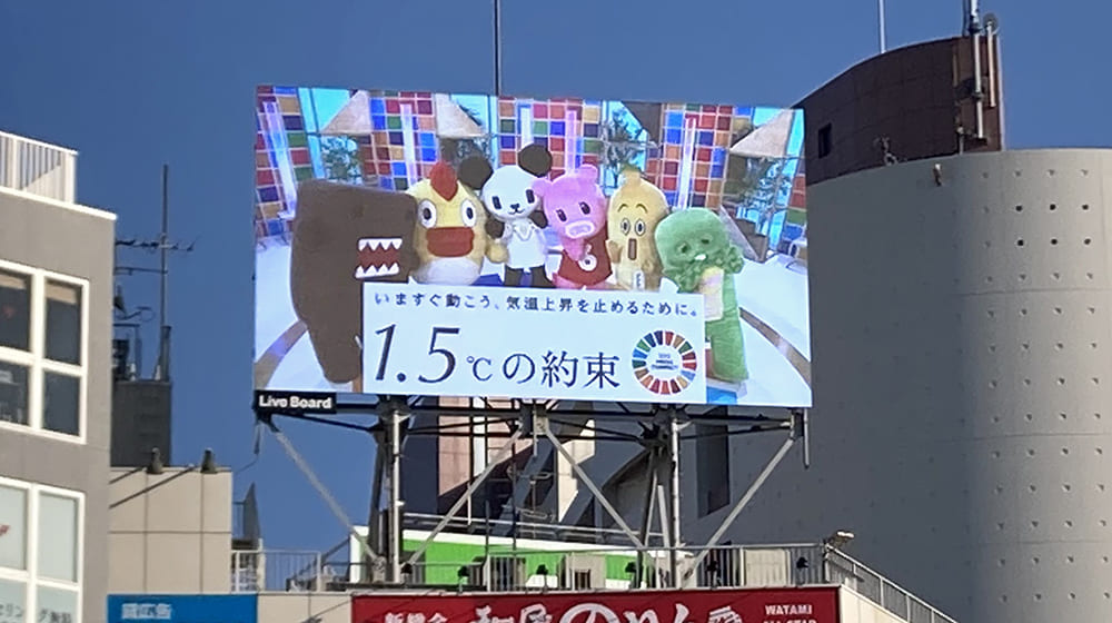 さらに、9月18日~10月17日の期間中は、全国67カ所の街中サイネージ(LIVE BOARD)で「1.5℃の約束」の動画が流され、多くの方の目に触れることになりました。