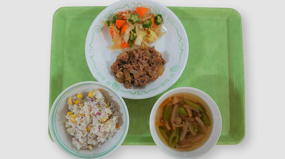 ちなみにこの日の給食には、どっこくんの紙芝居でもおなじみの糸寒天やオクラといった夏のおまじないの食べ物を入れてくださったそう!