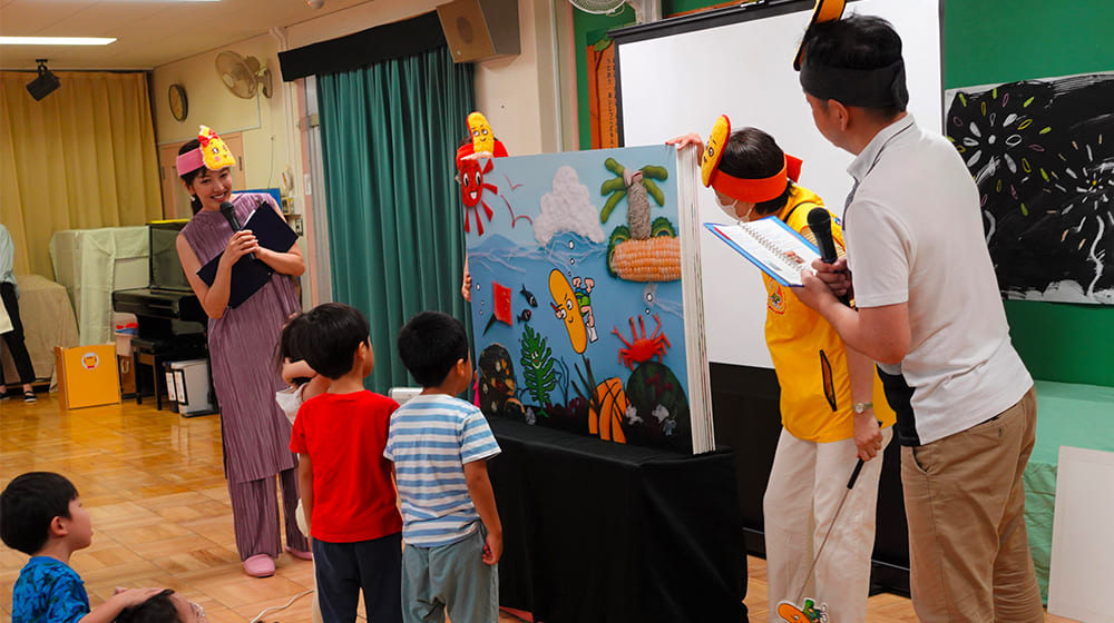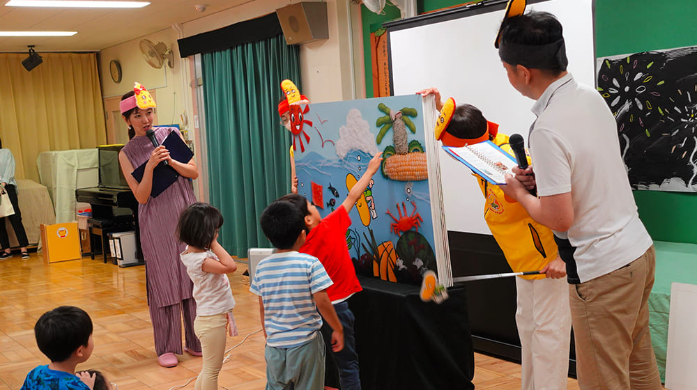 次は「どっこくんの紙芝居」。みんな釘付けで、真剣にお話を聞いてくれました。