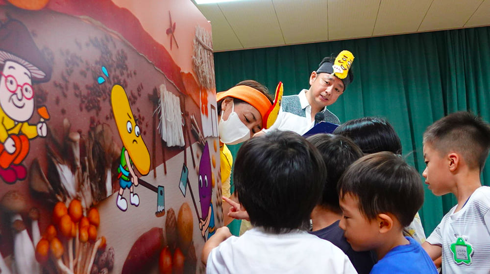 この春のお野菜が、紙芝居のどこに隠れているか、わかる人?」