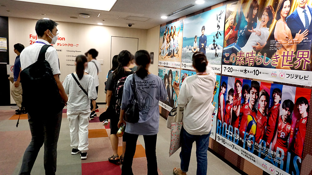 まず、フジテレビに集まった参加者たちがタレントクロークの前の廊下に飾られた番組の宣伝写真を見ながら進むと・・・現れたのは宮司愛海アナウンサー。生放送前にたまたま通りかかった宮司アナに、「かわいい!」と参加者は興奮した様子でした。