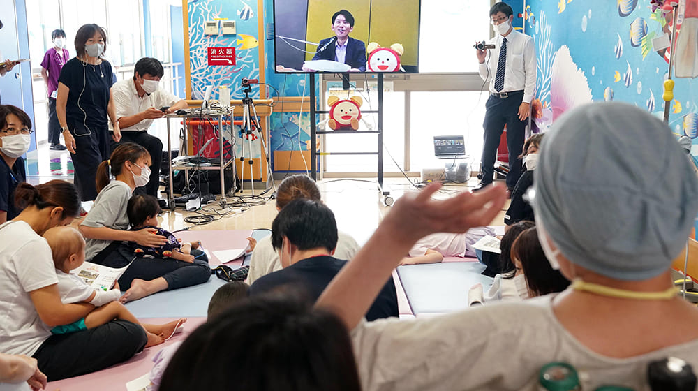 フジテレビと産経新聞社と国内外の心臓病の子どもたちを救う「あけみちゃん基金」(産経新聞厚生 文化事業団運営)が今年3月に共同で立ち上げた「ハーティープロジェクト」の第3弾が8月28日に愛媛大学医学部附属病院で行われました。このプロジェクトは、入院中の子どもたちを笑顔にするイベントを提供するもので、病棟内のプレールームとフジテレビをオンラインでつないで開催されました。