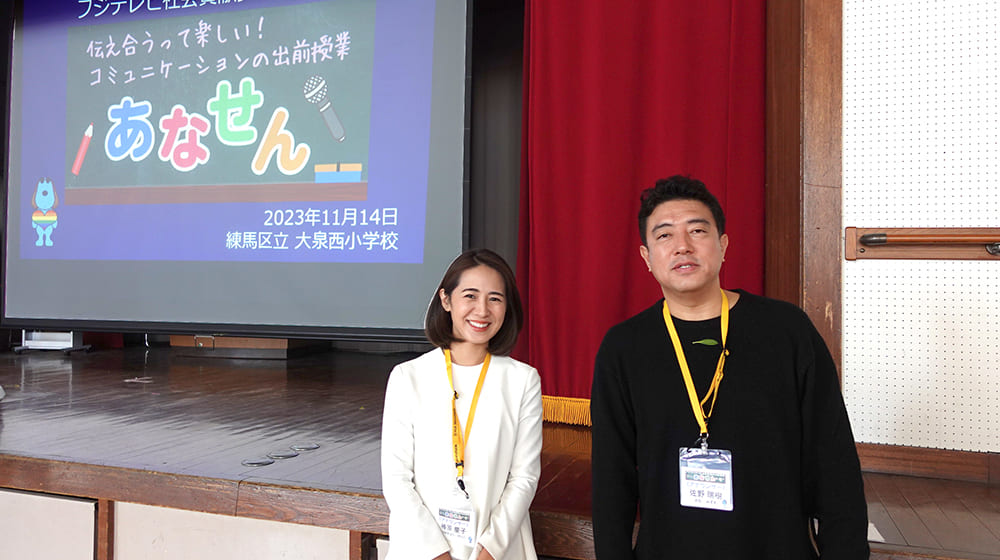 佐野アナと椿原アナが息のあったやりとりで授業を開始。子どもたちは頑張って手をあげて2人にたくさんの質問をして、最後には自分たちで取材した内容を素敵な文章にまとめてみんなの前で発表してくれました。
