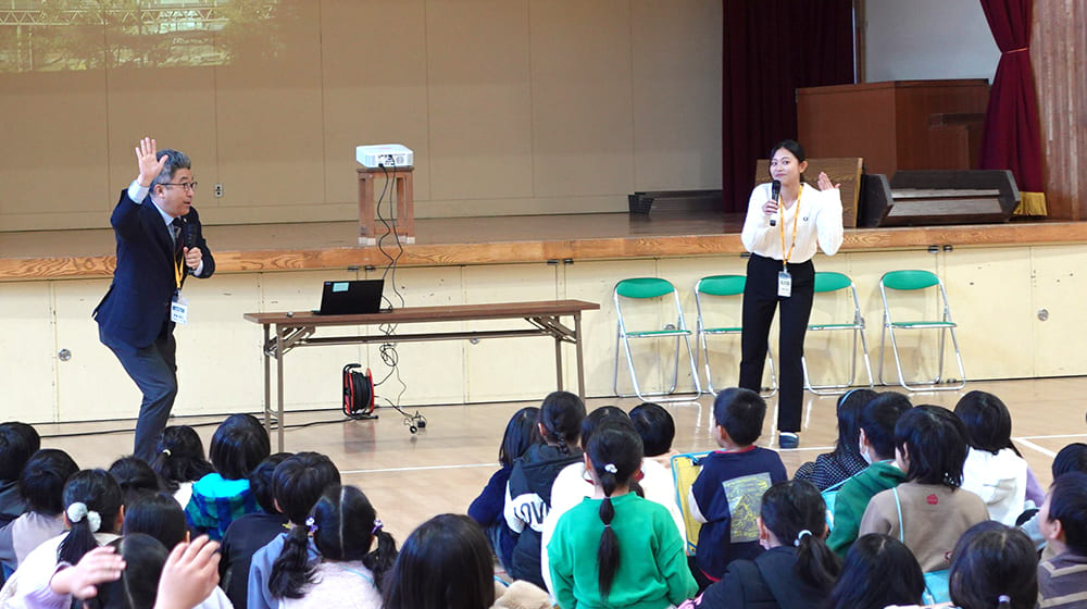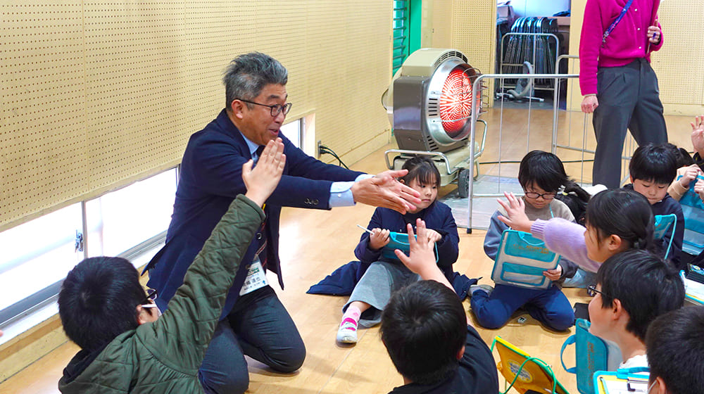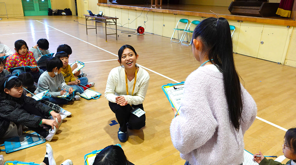 卒業生と知ったこどもたちからは驚きと嬉しさの混じった歓声が!青嶋アナと松﨑アナの熱い授業をみんな楽しんで受けてくれました。
