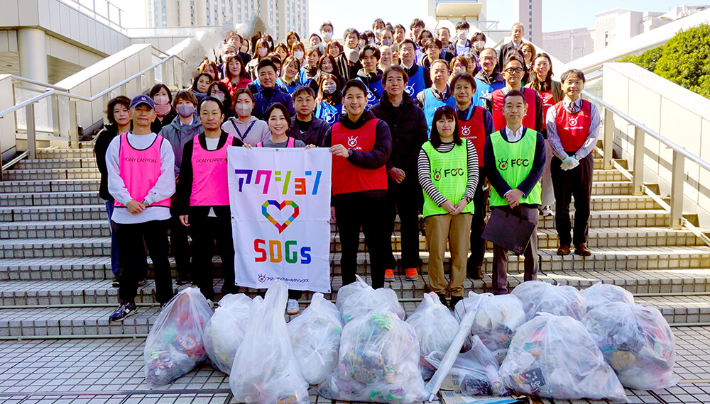 フジ・メディア・ホールディングス傘下や関係協力会社の12社、計65人が、フジテレビ本社屋の周辺を中心に70リットルのゴミ袋13個分に傘1本などを回収しました。