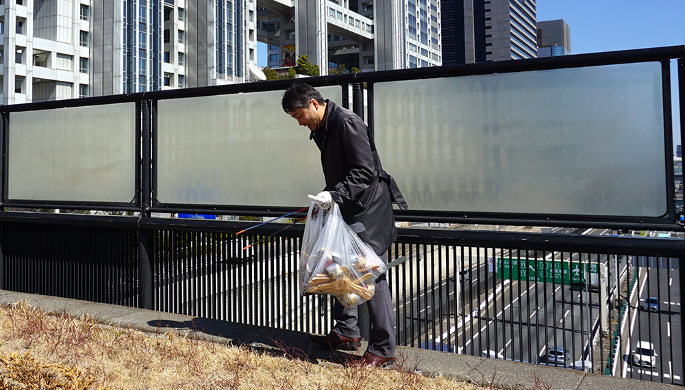 今回は、前回の清掃活動で使用したデジタルトングで得たゴミ情報を活用し、フジテレビ本社屋周辺を大きく3つに分けて、より効率よく清掃活動に励めるように工夫をしての活動となりました。