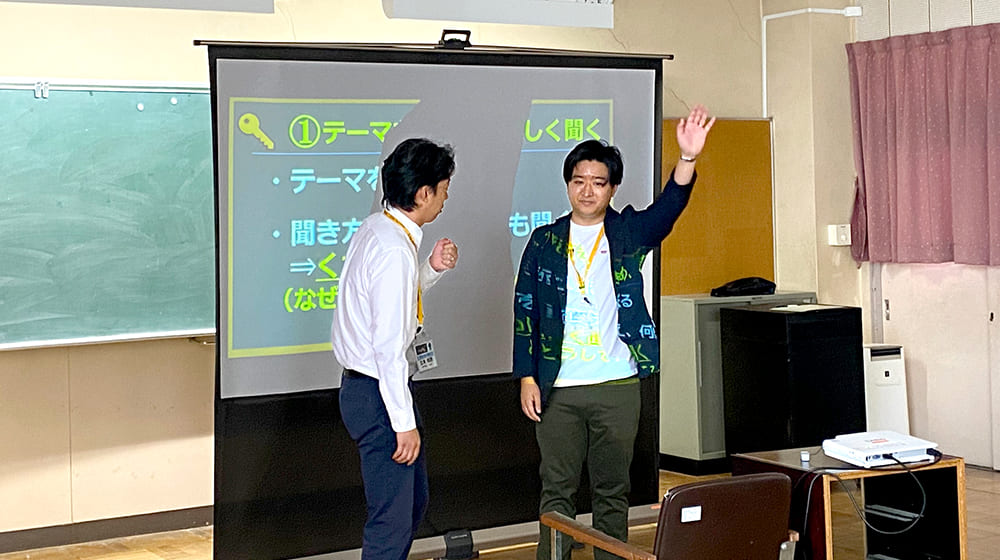 インタビューとスピーチという、ちょっと難しい授業でしたが、みんな真剣に取り組んでくれました。最後は私と立本アナにインタビューをしてもらいましたが、みんなそれぞれ、質問内容やインタビューの仕方など考えられたものばかりで感心しました。