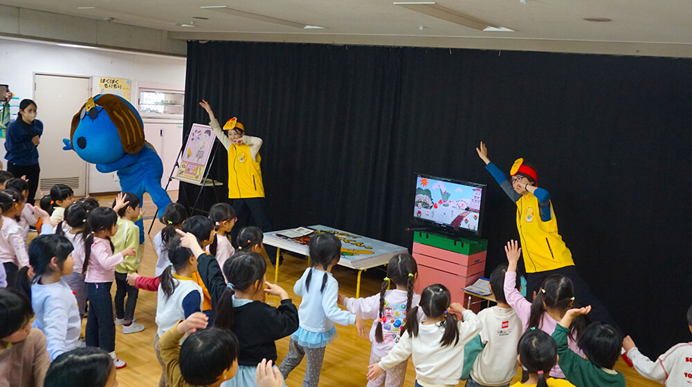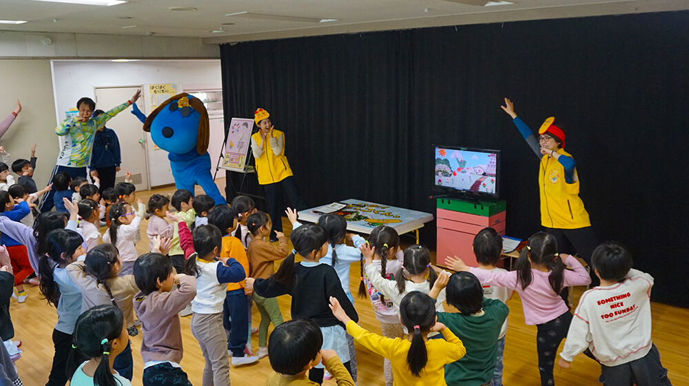 そして、紙芝居が終わると、「どっこくん体操」をみんなでダンス!元気いっぱい身体を動かして盛り上がりました。