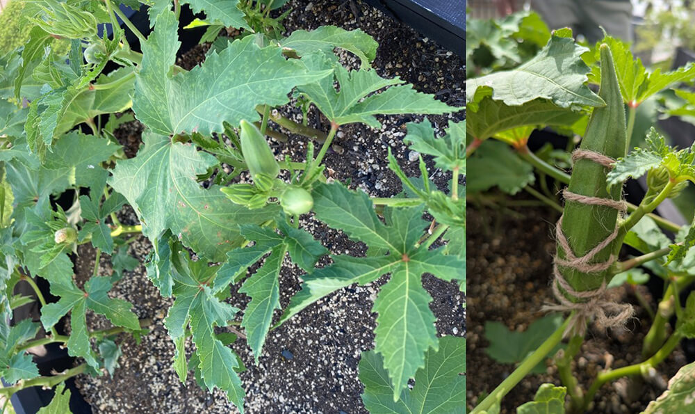 オクラも2回目。途中オクラの実の中に虫が入るという時期もありましたが、なんとか回避(虫が入ったオクラは先が曲がります)。最後は実がはじけないよう紐で縛って種をとりました。