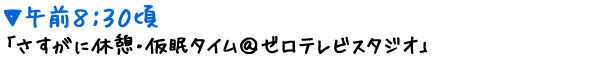 ゼロテレビスタジオに戻ってきた岡村は、さすがに疲れが隠せない模様。ソファに横になり仮眠に入る・・・が!