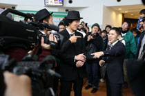 休日で賑わうお客さん、そして極寒の中、2Fテラスのめちゃイケ写真パネルに来場の証しとして無事にサインをすることができるのか!?