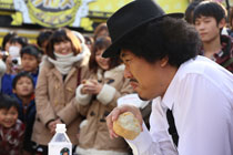 「G級グルメパーク」では、三中オススメのG級グルメを試食。ここでG級グルメの「G」に違和感があるとトータルテンボスが異を唱える。