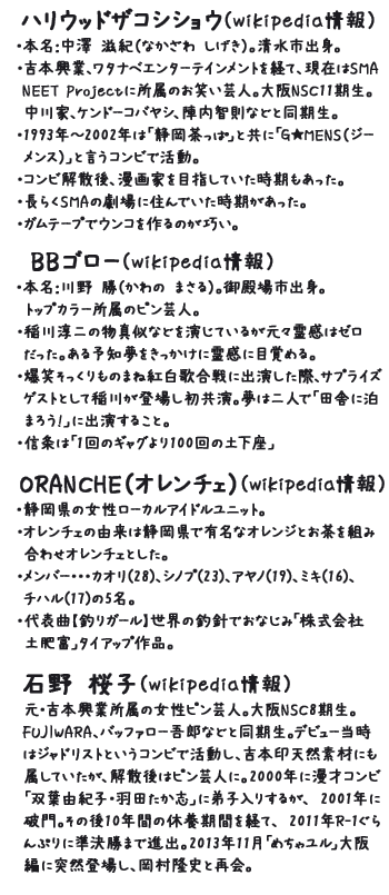 「くさデカ」のメインMCである平畠啓史が合流し、SA2階の足湯カフェに移動し平畠プレゼンツ「めちゃ×2ヌルんでるッ!」のコーナーに!静岡を代表するヌルいゲストは「ハリウッドザコシショウ」「BBゴロー」そして、【アイドル ブス】で検索すると最上位に表示されるご当地アイドル「ORANCHE」が登場。