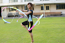 岡村も、リボンを投げて前転キャッチする技に挑戦!