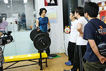 到着すると力士たちの張り手の音と、気合の入った声が聞こえてくる。中に入り、木瀬親方に挨拶をし早速稽古を体験。
